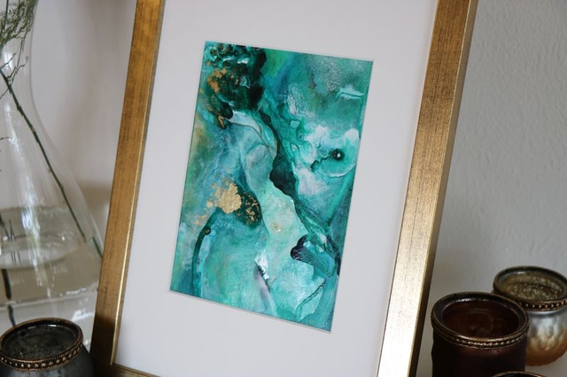 Größe 24 x 30. Acryl auf Papier mit Passepartout, inklusive Rahmen/Gold